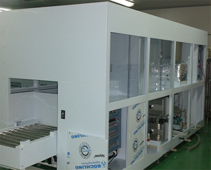 精洗准备:喷淋+超声浸泡精洗,精洗自循环,精洗回液,精洗完成;